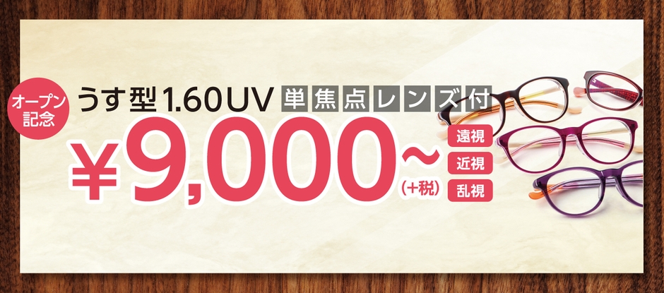 薄型1.60UV 単焦点レンズ付き ¥9,000円~(+税)