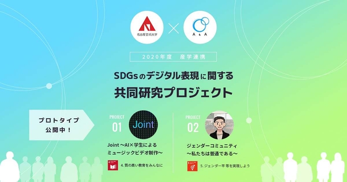 東海地域の芸術系総合大学 名古屋芸術大学と、名古屋で地域企業や大学、公共機関等のWebサイト制作を数多く手掛ける株式会社エーアンドエーは、2020年10月から「SDGsや企業等が取り組むその具体的な活動内容を、いかに効果的に、いかに幅広く一般の生活者に届けるにはどうしたら良いか?」をテーマに、そのデジタル表現や手法のあり方について研究するプロジェクトを進めてまいりました。