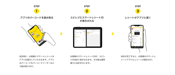 当社はコロナ対策支援として、2020年6月に対人非接触型のセルフオーダーシステム『ユビレジ QRオーダー』の提供を開始し、導入店舗の7割以上で「注文時のお客様とスタッフの接触8割減」を実現しています。加えて今回の『スマートレシート(R)』との連携により紙のレシート受け渡で生じる接触をなくし、店舗のコロナ対策をより一層強化・サポートさせていただきます。