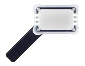 本製品は用途に合わせ、手持ち(虫めがね)、置き型の2Wayでお使いただけるルーペです。倍率は、適度な拡大率で見やすい約2.5倍。調光機能が付いた充電式LEDライトを内蔵しており、暗所でも快適に使用いただけます。