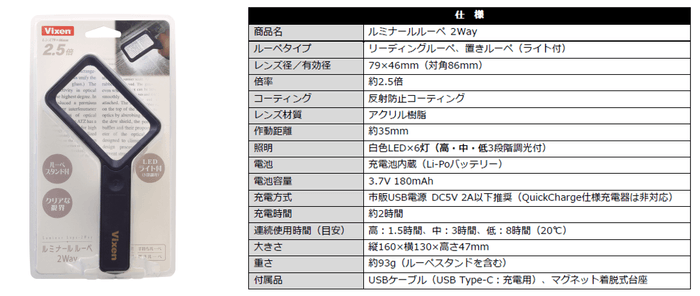 総合光学機器メーカー株式会社ビクセン(本社:埼玉県所沢市、代表取締役:新妻和重)は、手持ち・置き型の両方で使用できるLEDライト付き「ルミナールルーペ 2Way」を2020年2月7日(金)に発売します。