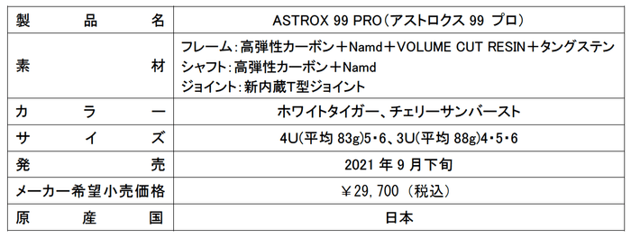 強力パワーと自在の打ち分けを実現 ショットの威力と球持ちが向上したバドミントンラケット 「ASTROX(アストロクス)99 PRO」「ASTROX 99 GAME」 2021年9月下旬より発売