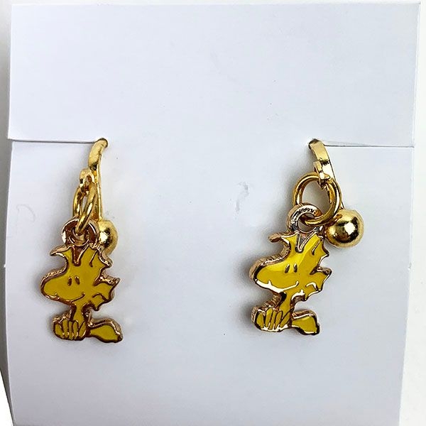 ウッドストックのイヤリングもご紹介します。1.4×1.2cmサイズのウッドストックが、耳元でかわいく動いてくれますよ。イエローカラーもカジュアルな装いに映えますね!