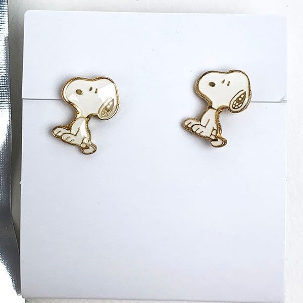 見てください!あまりにキュート過ぎてニヤけてしまいます。スヌーピーモチーフのピアスです。縁取りがさりげなくゴールドカラーになっていて、光沢感もあります。素材は鉄・真鍮で、1.4×1.2cmのサイズです。