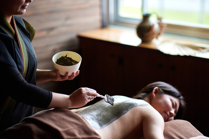 古より今も親しまれている県産の薬草で作ったハーバルボールを蒸し、蒸気で身体を温めながらマッサージを行い、全身の循環を促しながら本来持つ生命力を高めていきます。