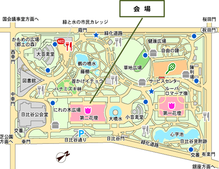 ※天候不良による中止の場合は当日10時までに日比谷公園公式ツイッター(https://twitter.com/ParksHibiya)にてお知らせします。