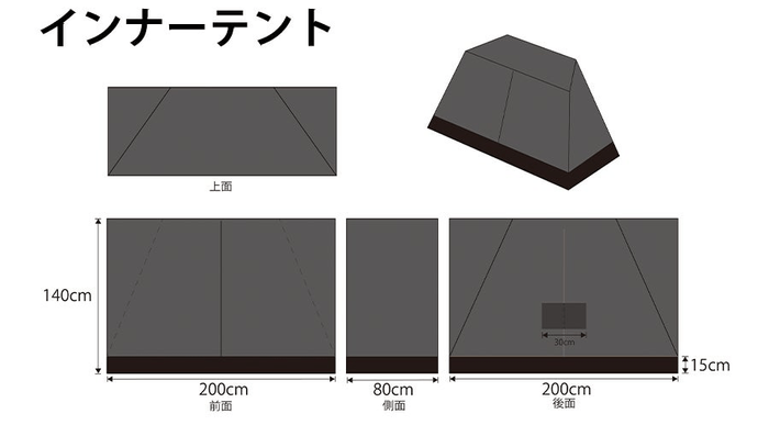 ・インナーテント:(約)縦80cm×横200cm×高さ140cm