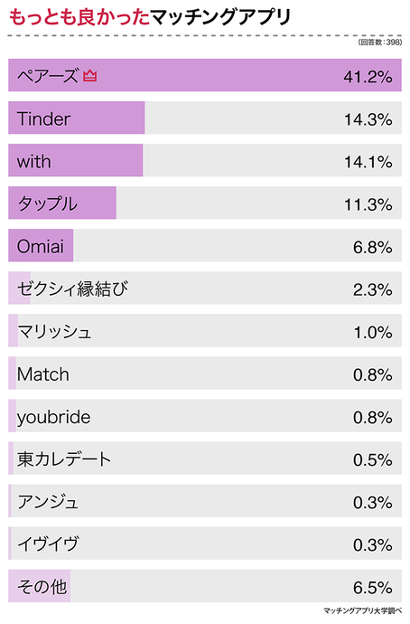 使ってみて一番よかったマッチングアプリ1位は「ペアーズ」