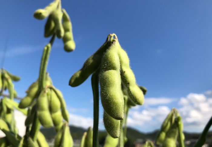 「丹波黒」は兵庫県を代表する極大粒の煮豆用・枝豆用の黒大豆ですが、茶斑莢の原因であるダイズモザイクウイルス(SMV)に感染しやすいという特性がありました。そこで、兵庫県では「丹波黒」と、SMV抵抗性を備えた「東山黒175号」を交配し、選抜育成した結果、被害が少なくキレイなさやの黒大豆枝豆「ひかり姫」を食卓にお届けできるようになりました。