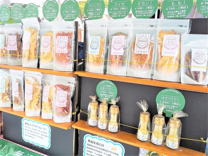 お久しぶりの出店は、北海道の野草茶「green樹」さんと、ドライフルーツと生姜パウダーのお店「カラカラフルーツ」さんです。