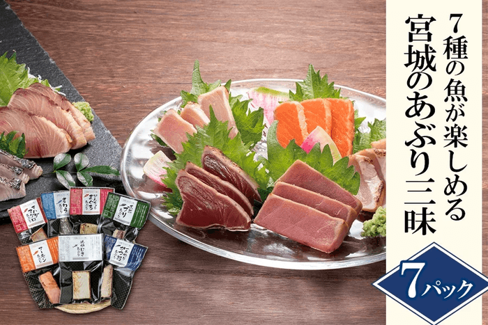 世界でも有数の漁場として名をはせる三陸の栄養豊富な海で取れた7種の魚をさっと炙って香ばしく仕上げました。解凍して切るだけでお刺身、お寿司、サラダなどをお楽しみいただけます。