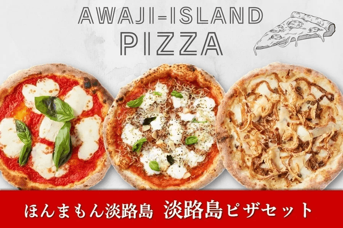 淡路島産・兵庫県産の素材にこだわって作った「淡路島マルゲリータ」、「淡路島チチニエリ」、「淡路島オニオンピザ」の3種をセットでお届けします。チーズやタマネギなどの具材はもちろん兵庫県産です。