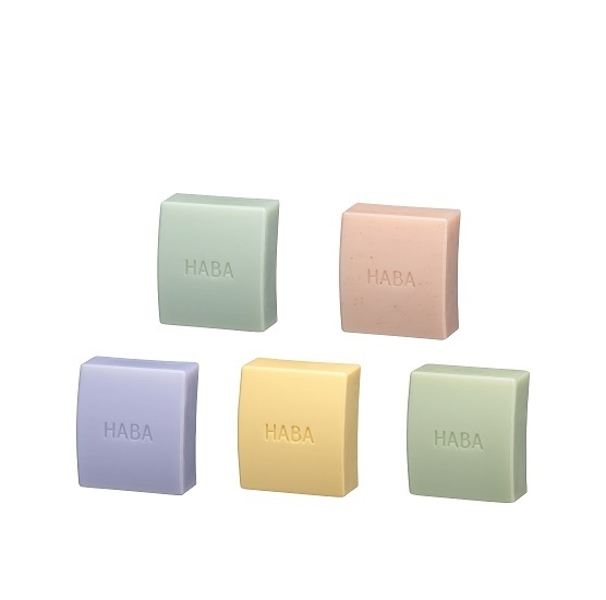 『HABA香りさわやかアロマソープセット』はクリーミィな泡立ちの洗顔・全身用石けんに、天然精油を配合。“ハッカ”“ローズ”“ラベンダー”“シトラス”“ハーブ”の5種類の香りが楽しめます。潤い・ハリアップ成分のマリンプラセンタ(R)※1、肌に吸着してとどまる吸着型ヒアルロン酸※2、うるおい成分スクワランを配合。しっとり、もっちりとした肌に洗い上げます。