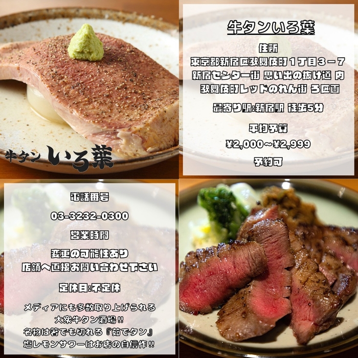 【ろ】歌舞伎町 牛タン いろ葉[牛タン居酒屋]