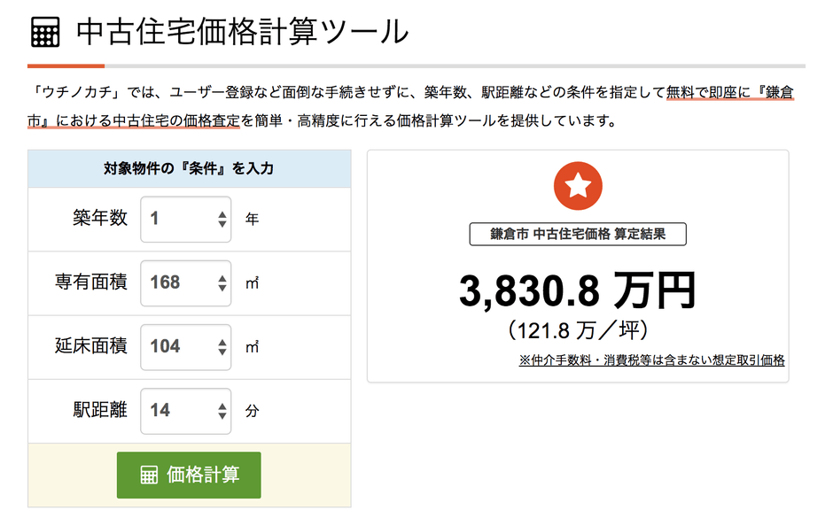 ◎神奈川県鎌倉市の中古住宅 価格計算ツール