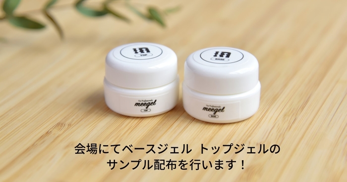 このたび出展が決定しました『東京ネイルエキスポ2022』では、少しでも多くの方のお悩みを解決するため、また「meegel」の良さを体感していただきたいという思いから、数量限定で「ベースジェル・トップジェル」の無料サンプルをご用意いたしました。