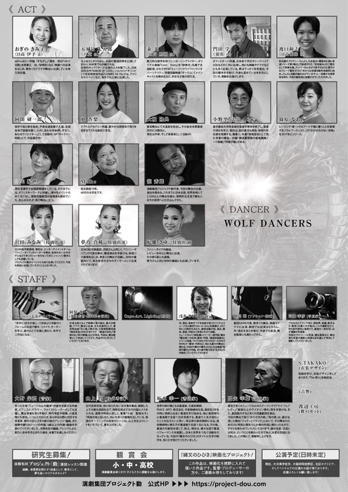 演劇集団プロジェクト動は、これまで舞台を中心に、ライブやイベントをあらゆる自治体や町の方々と共に開催してきた団体です。
