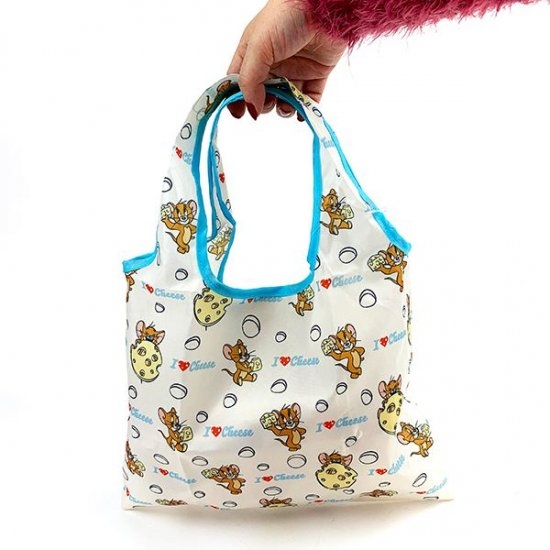 トム&ジェリーでお馴染みの、ジェリーがチーズを持ってゴキゲンな様子が散りばめられたエコバッグです。総柄になっていて、どこから見てもかわいいデザイン♪ブルーの縁取りや文字もかわいいですよね。