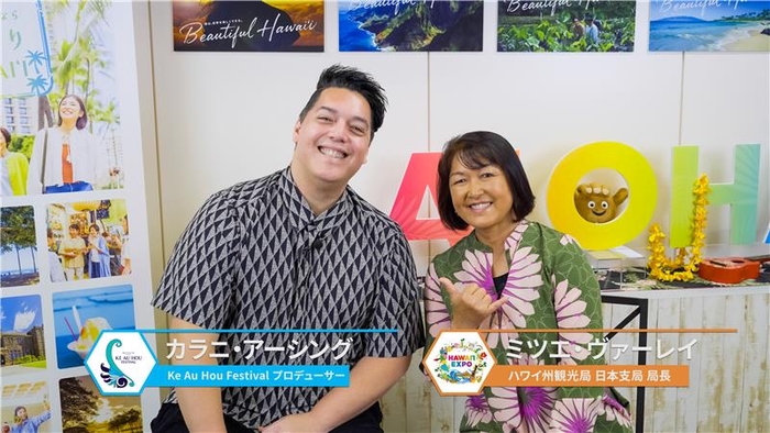 また、ハワイ州観光局 局長 ミツエ・ヴァーレイ、および、共催パートナー「Ke Au Hou Festival」主催者のクムフラ カラニ・アーシング氏からの特別メッセージ動画もご覧いただけます。ステージプログラムやワークショップ、セミナー等の詳細情報も順次更新していきます。