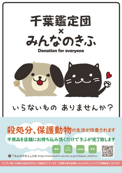 リサイクルショップに不用品を持ち込んで動物保護活動へ寄付! 「千葉鑑定団」×「みんなのきふ」が提携 寄付品買取の受付を開始
