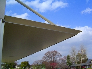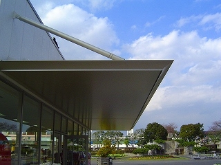 ゴールデンウィークや秋の行楽シーズンなどに多くのお客様が集うのが加須市にあります「むさしの村」。25種類のアトラクションを楽しめる遊園地、農作業が体験できるむさしの村農園、新装した大浴場やすらぎの湯ぽっぽ館などがあります。開園は1969年。歴史があるだけに老朽化した部分も多くなっていました。そして昨年の夏に弊社に耐震改修工事をされるゼネコン様よりお問い合わせがありました。「売店などに使用する大型のアルミハニカム庇はありませんか?」という内容でした。そこで私は、多くの施設で利用されている住軽日軽エンジニアリング社の大型アルミハニカム庇をご提案させていただきました。