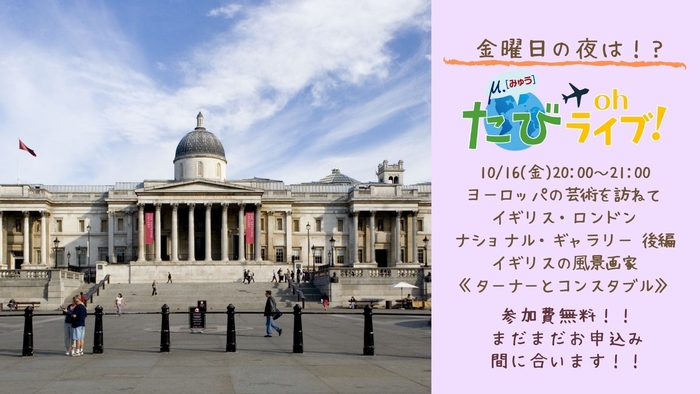 明日の【たびOhライブ!】も、ナショナル・ギャラリー展があるロンドンから、ナショナル・ギャラリーについてお送りします。