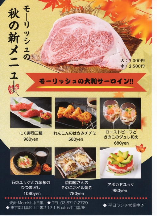 秋の新メニュー!!大判サーロインがお値打ち価格で登場!!