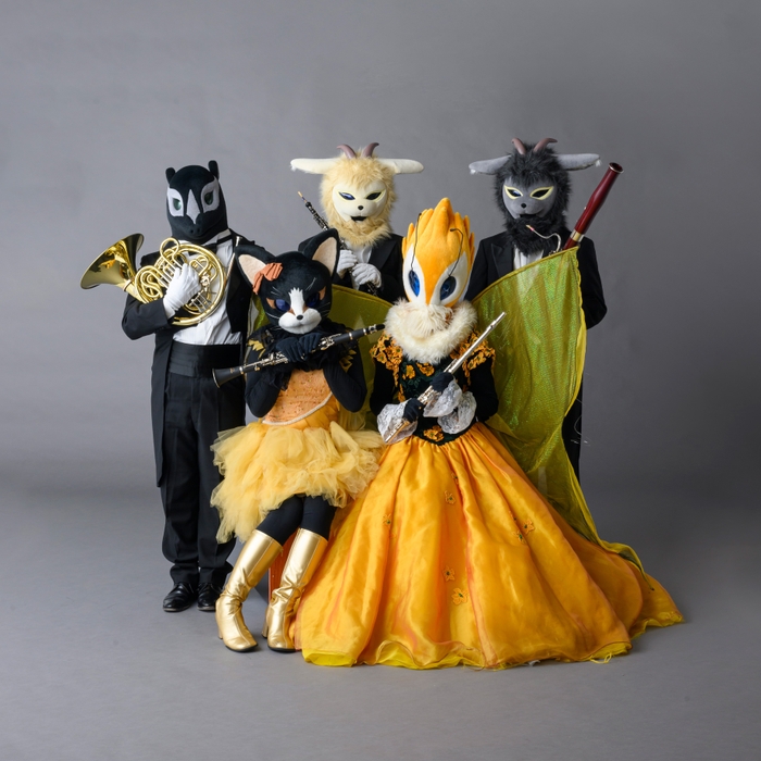 オーボエの白ヤギにバスーンの黒ヤギ。クラリネットを吹くのはクラリキャット(4人のネコによるクラリネット四重奏団)からメリッサ。ことふえパピヨンのヒメタテハがフルートを担当し、ホルンはマレーバクの親せきカズンバク。ズーラシアンブラスの仲良し達が集まって木管五重奏団「ズーラシアンウッドウインズ」を結成したのは、2013年のことでした。第一作目のア二バム※『森のメリーゴーランド』をリリースしてから早10年!クラシック音楽における絵本のような役割を果たしたいと、仲間の動物たちとともに全国各地でコンサートを行っています。その間にもたくさんの木管五重奏の楽譜を制作し演奏活動の裾野を広げてきました。