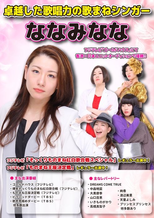 フジテレビ系列の「爆笑そっくりものまね紅白歌合戦スペシャル」レギュラー出演中!、「ものまね王座決定戦」2021年・2022年決勝進出!