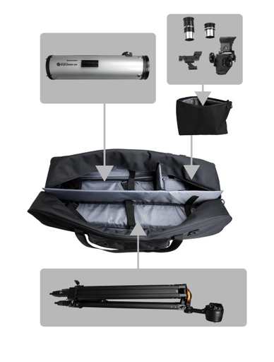 StarSense ExplorerシリーズやAstro Fi5 SCTの鏡筒、マウント、三脚、天体アクセサリーが全て収納できます。