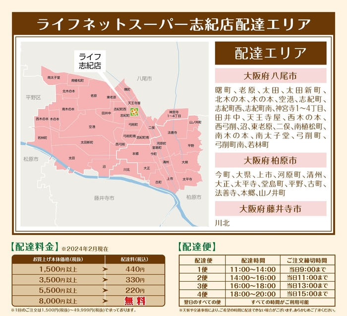 “おいしい” “ワクワク” “ハッピー” をお届けするライフコーポレーションは、6月19日(水)より志紀店で「ライフネットスーパー」のサービスを開始しました。