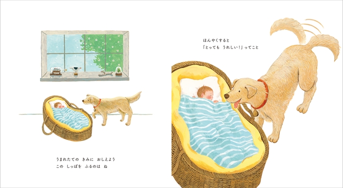 「きみに おしえよう。しっぽをふるのはね、”とってもうれしい!”ってこと」。