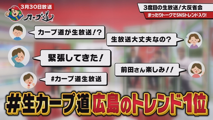 スタジオトークが盛り上がり過ぎて、時間配分を誤ります。この状況を知りSNSがざわつき始めました。さらに、カープ道ファミリーによる生中継も大混乱!?