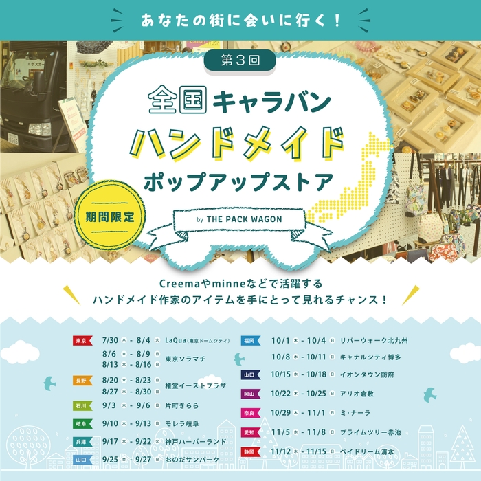 ネット限定ハンドメイド作家の商品を全国12都市で販売 第3回THE PACK WAGON 全国キャラバン・ハンドメイドポップアップストア開催!