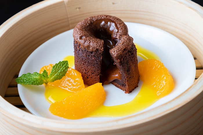 熱々スフレから流れ出る、たんかんとチョコのソース。驚きの一皿をどうぞ。