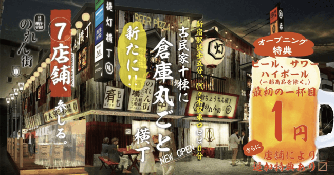【ほぼ新宿のれん街】倉庫丸ごと横丁が仲間入りで更にパワーアップ!!日本初の倉庫まるごと横丁区画【ほぼ新宿のれん街 倉庫別館】オープン!!オープンキャンペーンでドリンク1杯目が1円