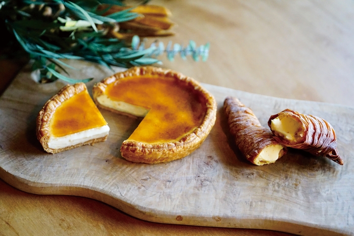 その名の由来となった伊勢海老のしっぽに似たパリパリのパイシューに、自家製カスタードをたっぷり詰めた、イタリア・ナポリの伝統菓子「Coda di Aragosta(コーダ・ディ・アラゴスタ)」や、ザ サーカスの看板商品であるカマンベールチーズケーキをご紹介いたします。