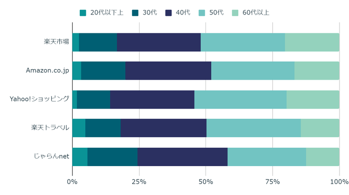 ・主要ECショップの利用は50代以上のユーザーが過半数で、EC利用も活発