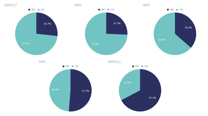・幅広い年齢層で使われているが、特に50代が最も多く、男性はよりアクティブに活用している