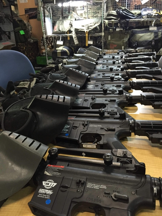 サバイバルゲームに必要なエアガン・フェイスゴーグル・グローブはレンタルが可能。手ぶらでご来店いただいてもゲームにご参加いただけます。