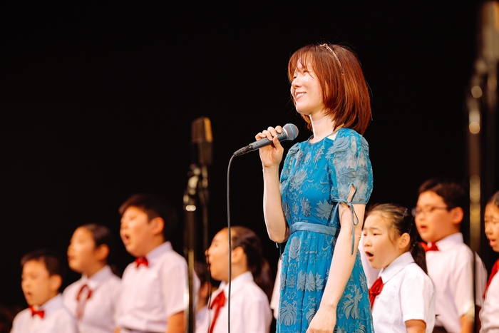 公演では、自身のオリジナルソングから、名曲のカバーまで、たっぷりとその歌声を届けました。また、ツアーでは毎回、開催地域で活動する児童合唱団がゲストで登場。東京公演では「文京区立本郷小学校合唱団」が半﨑美子とともに、「地球へ」を歌い上げました。