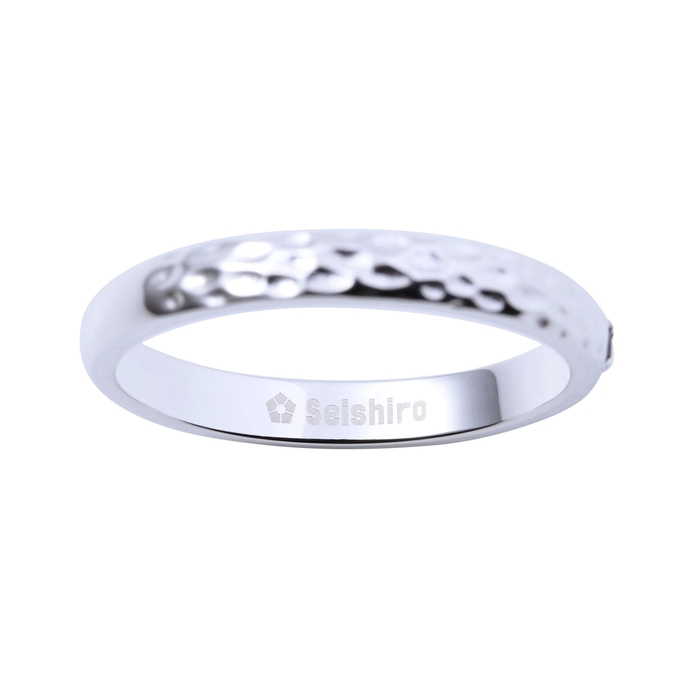 内側に青い監獄と名前を刻印。シンプルで日常使いしやすいリングです。
