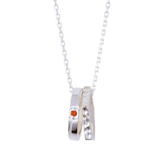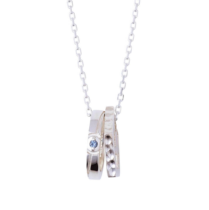 もう一方は青い監獄をイメージした五角形リングに槌目加工を施した二連ネックレスです。