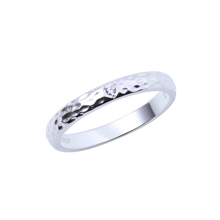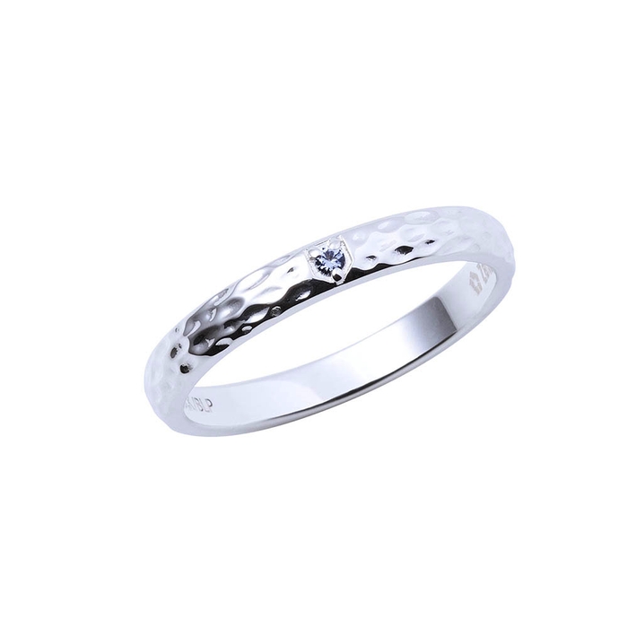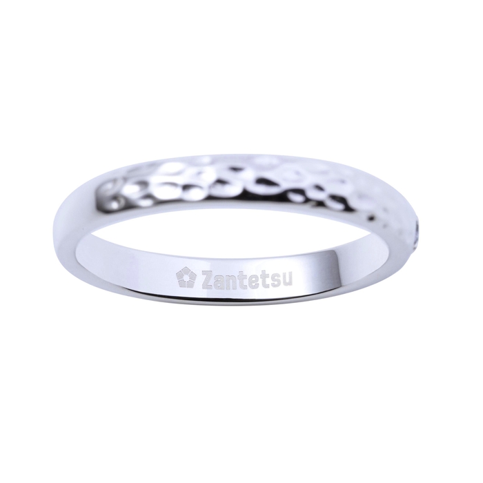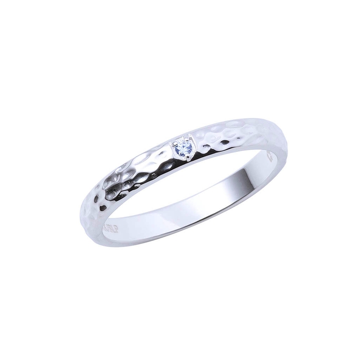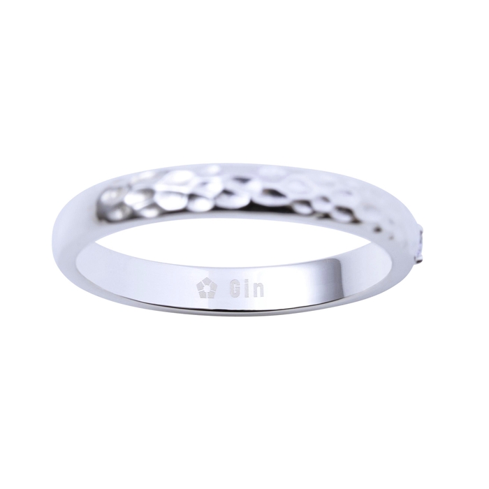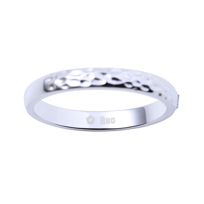 甲丸リングに槌目加工を施し、イメージカラーストーンをセット。作品の世界観をデザインに取り込みました。