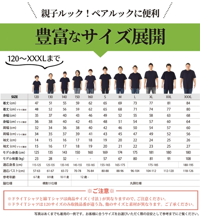 豊富なサイズ展開なので、お子様から大きいサイズの方までご利用いただけます。