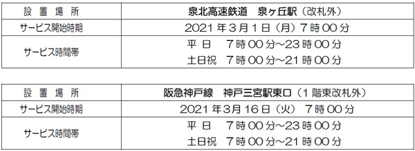 泉ヶ丘駅への設置により、泉北高速鉄道への設置は3駅となります。また、神戸三宮駅への設置は3ヶ所目となり、ますます便利にご利用いただけます。