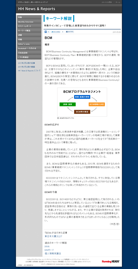 「HH News & Reports」で取り上げた特集・インタビュー記事の中からIT関連の重要語句をピックアップし、紹介します。今回は「BCM」。