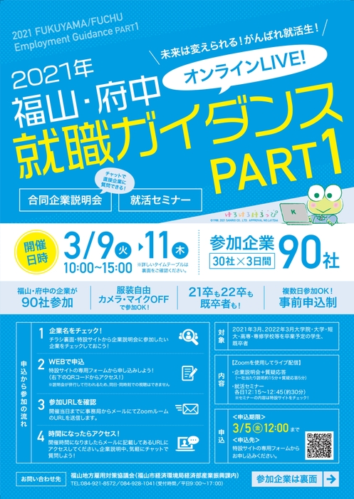 採用に意欲的な90社が参加!2021年福山・府中就職ガイダンスPart1をオンラインで開催!