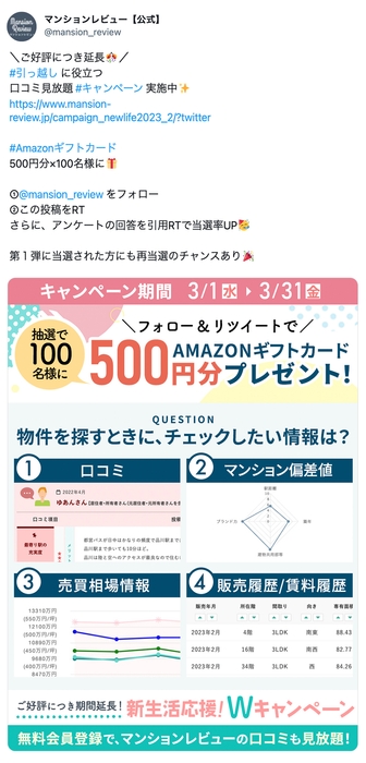 ・キャンペーン詳細:https://www.mansion-review.jp/campaign_newlife2023_2/
