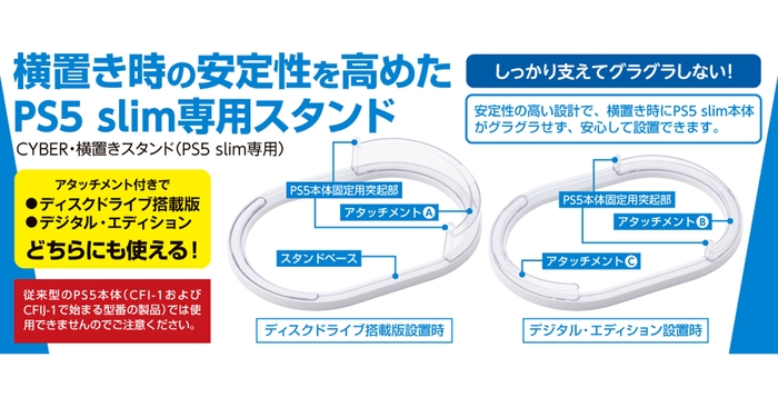ディスクドライブ搭載版&デジタル・エディション両対応! 横置き時の安定性を高めたPS5 slim専用スタンドが新発売